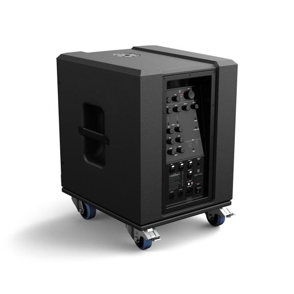 Four heavy-duty 80 mm swivel castors, two of which have locking brakes, allow the subwoofer to be moved easily and stored safely.