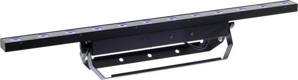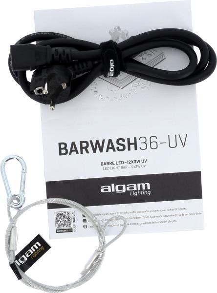The Barwash 36 UV from Algam Lighting is a 1-meter professional LED bar, dedicated exclusively to ultraviolet lighting. Equipped with twelve 3W UV LEDs (36W total) and a 40° beam angle, it delivers a uniform wash, ideal for revealing fluorescent paints, textiles, and makeup. Lightweight (2.8 kg), robust, and compact (1000 × 51 × 157 mm), it easily integrates into any stage or event configuration. Its simplified control via DMX-512 (1 channel) or manual mode ensures rapid setup and compatibility with most installations.