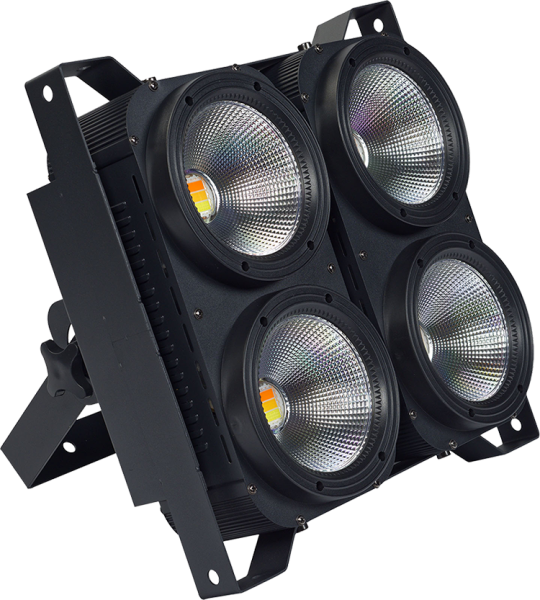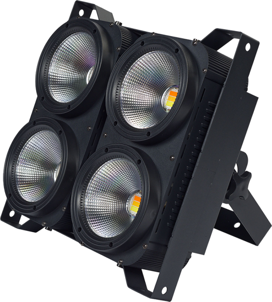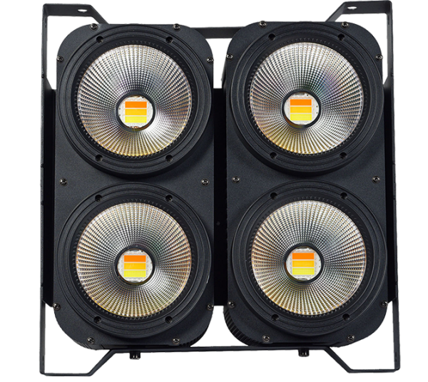 Blinders are ultra-powerful lighting systems that are integral to the stage. They are used to generate a momentarily blinding wave of light to accompany the music and the artists' performances. Traditionally based on high-power halogen bulbs, these energy-intensive lighting systems exhibit a hue that tends to shift toward amber due to filament heating.