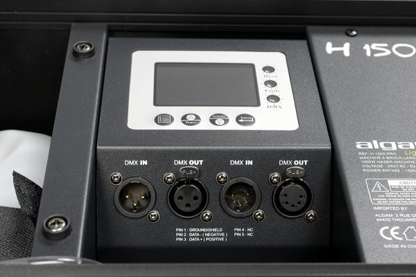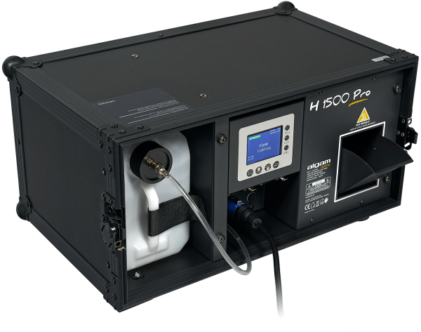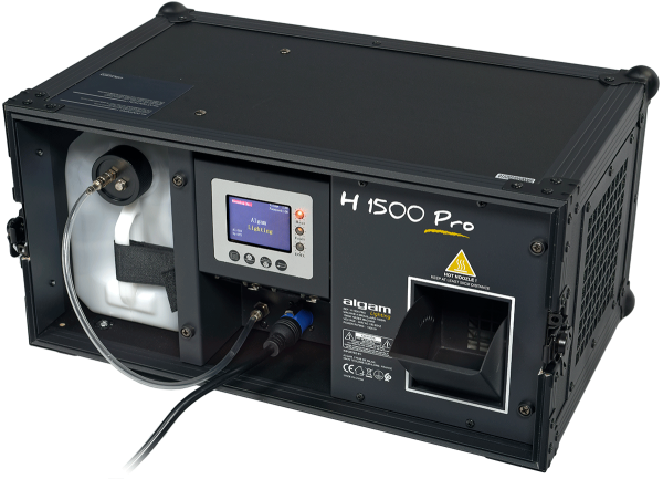 Its control panel allows for various modes and settings (trigger intervals and durations, timer, output volume, fan speed) that are easily programmable via the LCD display. Powered by a Powercon connector, the H1500-PRO also offers DMX remote control and a fluid level detection function that alerts you when the fluid level is too low.