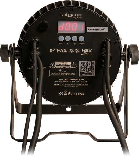 Benefiting from IP65 protection, the IP-PAR-1212-HEX is equipped with sealed connectors on the unit and extension cables for both power and DMX, with the ends protected by a rubber cap to prevent any ingress into the connectors. Highly versatile, this projector can operate in automatic mode, react to ambient music, be controlled via a DMX controller or a master unit, and can also be configured via the control panel on the back.