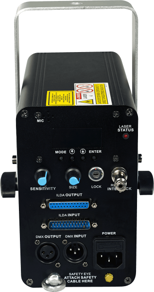 The LASERS can be operated in musical, automatic or DMX mode, with 11 DMX channels available.