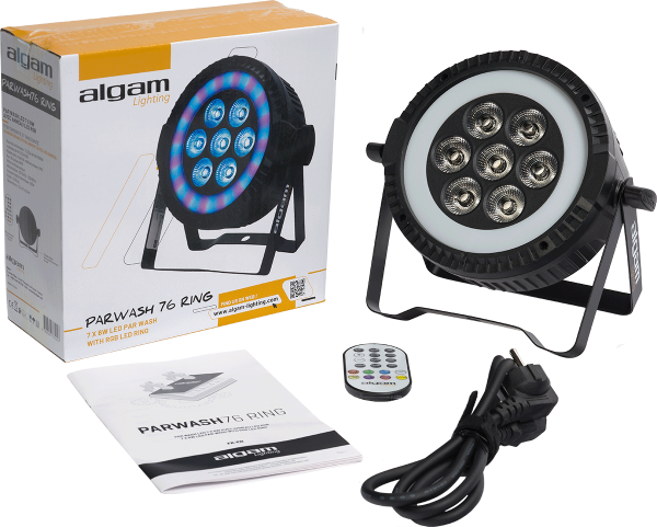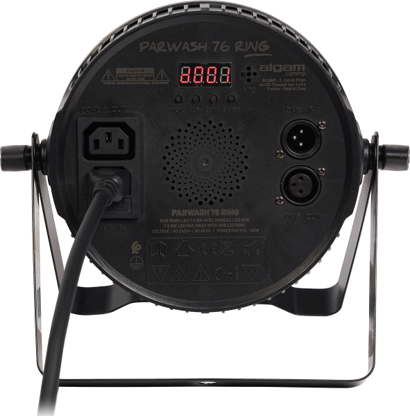 Numerous control and installation options. The PARWASH76-RING features a compact profile ideal for situations where space constraints are high, while offering a wide diffusion angle. Versatile, it has an Automatic mode, a music detection mode and a DMX mode allowing control by a DMX remote control, in addition to the infrared remote control provided. Installation of the PARWASH 76 RING is very easy thanks to its double bracket which facilitates its installation on the ground and its passive cooling, generating neither parasitic noise nor excessive heat during your performances or indoor events.