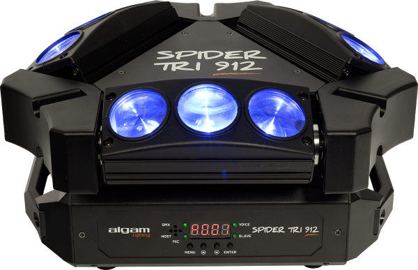 Designed for use by both novices and professionals, the Spider Tri 912 offers numerous operating modes to meet all your needs. To set the mood in just a few moments without tedious adjustments, simply use the Automatic or Music Detection mode, and the Spider Tri 912 will set the dancefloor ablaze! For professionals looking to create a more advanced light show, the Spider Tri 912 features a DMX mode that can operate on 16, 24, or 48 channels to control each LED independently. The Spider Tri 912's flexible installation options allow you to install it on the floor, or hang it upside down for an impressive sweeping effect throughout the room.