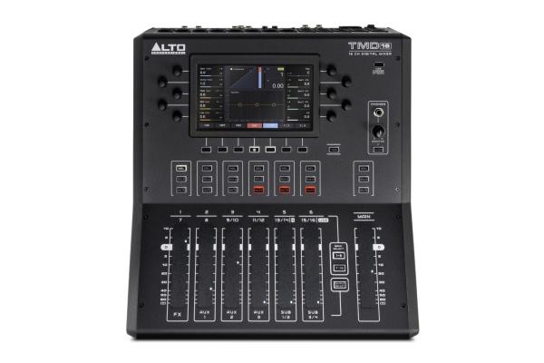 The TMD16, from Alto Professional, is a compact 16-channel digital mixing console that combines professional performance, advanced ergonomics, and an affordable price. Designed for musicians, technicians, rehearsal spaces, studios, and performance venues, it offers a smooth and precise mixing experience thanks to its clear interface, 100mm capacitive faders, and 7" color screen surrounded by numerous encoders and control buttons.