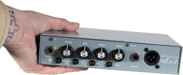 The Ashdown UK-PBM-200 revisits the concept of ultra-portable bass amplification pioneered by the Ashdown ANT. Now available as a dedicated 200-watt mic amp head, hand-assembled in the UK and sporting an elegant ice-blue finish, this compact amp offers impressive volume, exceptional clarity and precise sound control. It slips easily into a bass case pocket or sits discreetly on any baffle.