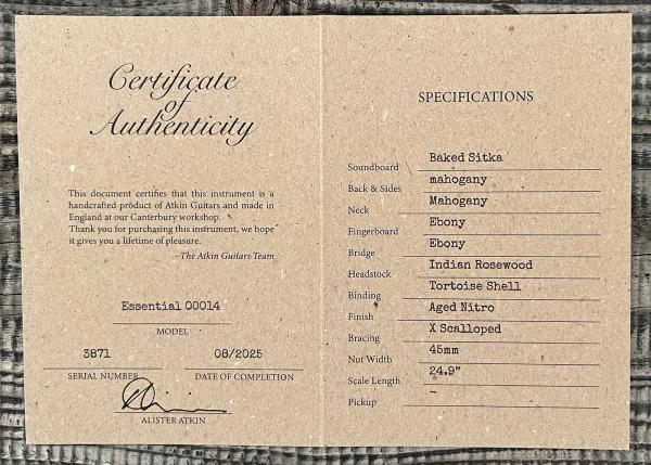 Hand built in England in very small quantities, ATKIN Essential 000 #3871 acoustic guitar offers 100% Atkin tone, stripped down to the bare essentials.