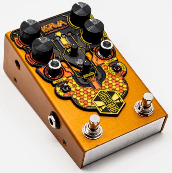 Compatible with guitar, bass and synths, BEETRONICS LARVA Morphing Phaser is a 6-stage analog phaser, vibee and preamp delivering unmatched warmth, paired with a simple and intuitive interface packed with modern features like tap tempo and dual morphing presets.