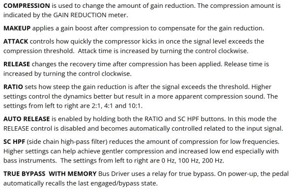 CITADEL ELECTRONICS LTD Bus Driver Analog VCA Compressor draws heavy inspiration from the mix bus compressors found in vintage SSL® mixing desks, offering everything between transparent and extremely squashed studio-quality compression with user-friendly controls. The LED bar provides a precise visual representation of the gain reduction.