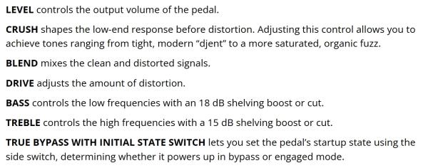 CITADEL ELECTRONICS LTD Plutonium Overdrive is an analog op-amp-based distortion pedal designed specifically for bass, crafted with years of experience in high-performance bass pedal engineering. The unique Crush control provides seamless adjustment between crispy distortion with punchy low-end and a thick, warm fuzz, giving you a wide range of modern and organic tones.