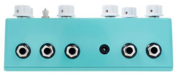 - 2x jack 6,3 mm TRS inputs for optional expression pedals (reverb mix / tremolo speed)