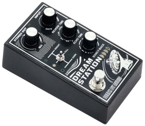 The Dream Station is like two Death By Audio pedals in one! It’s an instant mood creator, blending DBA-style reverb and delay to plunge your signal into a vivid fantasy hallucination. Three filter settings let you radically shape the tone and character of the effects, opening up a myriad of soundscapes at your fingertips and exploding your sound into super-wide stereo.