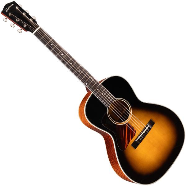 EASTMAN E10OOSS Thermo-Cure Left Handed is a compact acoustic guitar with solid Adirondack Spruce top, solid Mahogany back/sides, Mahogany neck and Ebony fingerboard.