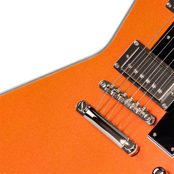 The Gibson Explorer™ has one of the most radical, modern, and instantly recognizable profiles in the world of electric guitars. Designed and first released in the late 1950s, it was so modern that players took years to catch up, but once they did, it became a favorite among rock and metal players worldwide. Epiphone is excited to introduce the EPIPHONE Inspired By Gibson Futura Explorer Custom (EIFEXCFSSNH), an extraordinary, modern take on a design that was way ahead of its time when Gibson first released it in 1958. The angular mahogany body has 7-ply binding on the top. It is equipped with a LockTone™ Tune-O-Matic™ bridge and a LockTone Stop Bar tailpiece for outstanding intonation and sustain, and Posi-Lok™ strap buttons keep your strap securely attached without extra hardware. The glued-in mahogany neck has an ultra-comfortable, fast-playing Modern C profile and is topped with a bound ebony fretboard with 22 stainless steel medium jumbo frets and attractive Super 400-style pearloid split block inlays. The fretboard also features a 10”-14” compound radius, making chording and string bends equally effortless. The bound Explorer headstock is equipped with locking Grover® Mini Rotomatic® tuners, a Graph Tech® nut, and an Epiphone logo inlaid in mother-of-pearl.