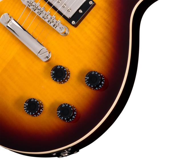 The popular Epiphone Tribute series, a gateway into the world of Epiphone guitars for countless new players, is expanding with the release of the EPIPHONE Inspired By Gibson Les Paul Tribute Plus Left Handed (E1LPTPVSNH1L). This affordable yet high-quality guitar is designed for beginner and intermediate-level players who want a quality guitar that won’t hold them back or hinder their learning progress. The Les Paul Tribute Plus features a classic Gibson Les Paul-shaped body made from mahogany. It has a carved and bound top with an AAA flame maple veneer top that looks fantastic. The bolt-on mahogany neck has a fast and easy playing 60s SlimTaper Rounded C profile that makes practice sessions and jamming a joy, and a sculpted heel joint for improved upper fret access. The headstock features the popular 60s Kalamazoo shape and is outfitted with quality die-cast tuning machines, and the bound laurel fretboard is outfitted with 22 medium jumbo frets and adorned with pearloid trapezoid inlays. The Les Paul Tribute Plus is equipped with an Epiphone LockTone™ Tune-O-Matic bridge and LockTone Stop Bar tailpiece for easy adjustment of string height and intonation, and both contribute to this model’s excellent sustain. The Epiphone Les Paul Tribute is powered by a pair of Epiphone humbucker™ pickups, with an Epiphone 650R in the neck position and an Epiphone 700T in the bridge position. Both pickups are equipped with powerful ceramic magnets for strong, full-bodied tone, and under the nickel covers, they have zebra pickup coils. The Epiphone Les Paul Tribute Plus elevates the Tribute series with even more performance and better looks while remaining accessible to players everywhere. It’s a great choice for your first electric guitar or as a step up from a lesser-quality instrument and will serve you well on your musical journey for years to come. An optional Epiphone gig bag or hardshell case is available separately.