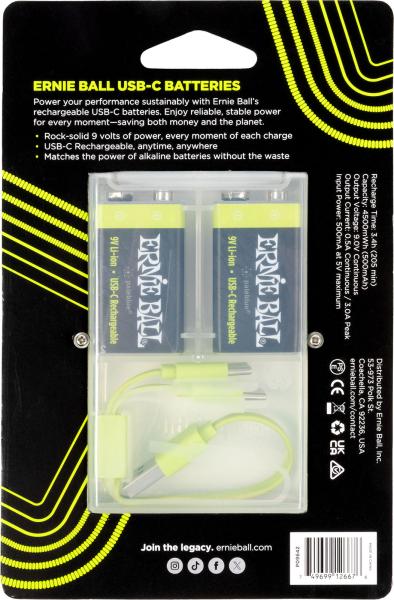Ernie ball 9642 - 9v rechargeable via USB-C
