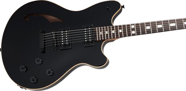 EVH SA-126 Standard (5107026503) is the very definition of innovation incarnate. It’s a hybrid between semi-hollow and solid body guitar : think chambered/center block solid body blended with a bolt-on neck, then kitted out with features most frequently associated with high performance guitar brands such as a slim neck, jumbo frets and higher output pickups. The brain child of Wolfgang Van Halen, the instrument was created with versatility in mind, striking the perfect balance between pummeling rhythm tones and lightning-fast lead runs.