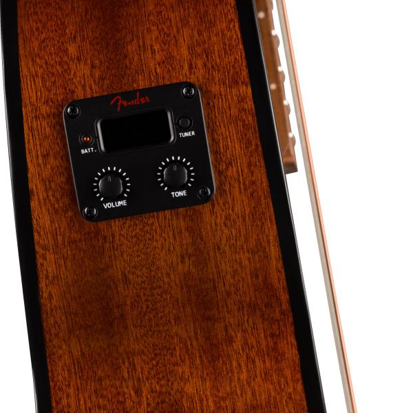 The onboard Fender electronics provide high-quality output for live amplification, recording and effects, as well as a convenient onboard digital tuner. Other noteworthy details include an oiled walnut fingerboard and bridge, sealed gear tuning machines for smooth and accurate tuning action, and a sleek long-lasting gloss finish.