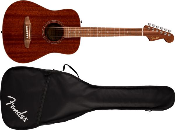 The miniature dreadnought size is compact and approachable, a perfect option for travelers or smaller players at every stage of their musical journey. The FENDER California Standard Redondo Mini With Gig Bag (0974103121) features resilient laminate construction with a spruce top and sapele back and sides for impressive and satisfying tonal character, while a short 22 ¾” scale neck with a slim “C”-shaped profile provides an inviting and effortless playing feel. Other noteworthy details include an oiled walnut fingerboard and bridge, sealed gear tuning machines for smooth and accurate tuning action, and a sleek long-lasting gloss finish.