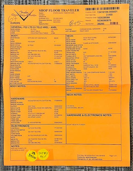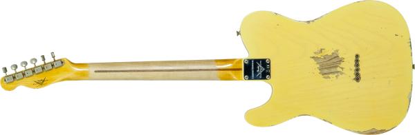 Developped around a "1952 Telecaster" Base Model,FENDER Custom Shop Time Machine 1953 Telecaster Heavy Relic Aged Nocaster Blonde #R126760 (9236080870) solid body electric guitar features 2-pieces sort for "lightweight" Ash body, quarter-sawn AA flame Maple neck and fretboard (1954 U, profile, narrow-tall frets, compound 7.25/9.5" radius), Custom Shop Hand-wound Twisted Tele (neck) and Original Blackguard (bridge) pickups, traditional/vintage-style parts.