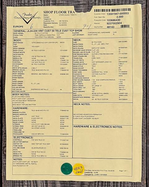 - Fender Custom Shop Deluxe Hardshell Case (Brown with Yellow interior), Strap, Certificate of Authenticity
