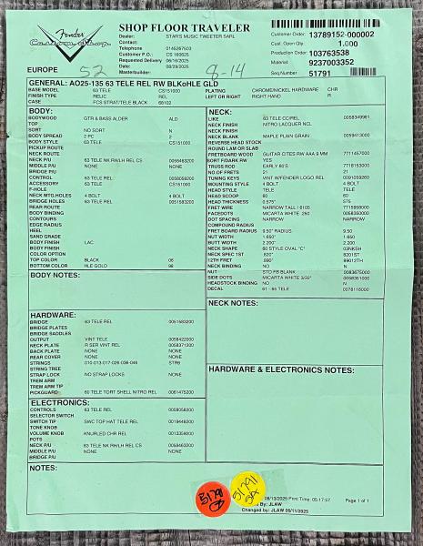 - Included Fender Custom Shop Hardshell Case Brown (Blue interior) , Strap, Certificate of Authenticity