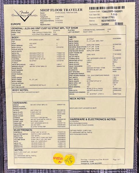 - Included : Fender Custom Shop Deluxe Hardshell Case Brown (Red interior), Strap, Certificate of Authenticity