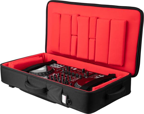 Inside, customizable foam blocks and Velcro straps ensure a precise fit for DJ controllers up to 80 cm, keeping your gear perfectly secure during transport. Designed for mobility, the ICON bag features retractable backpack straps with integrated bottle opener, TSA padlock-compatible zippers and reinforced, padded handles for maximum carrying comfort.