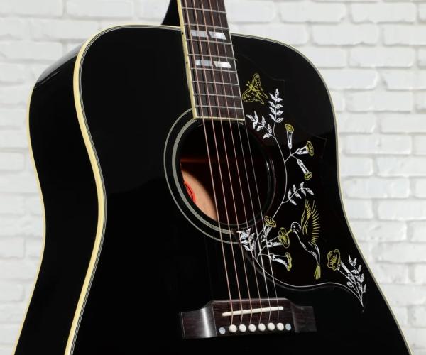 It builds on the classic Hummingbird features that players expect, including a Sitka spruce top, mahogany back and sides, and a 24.75” scale mahogany neck with a round profile, and adds Torch inlays, Ebony nitrocellulose lacquer finish and gold Grover open-back tuning machines.