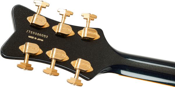 The GRETSCH Limited Edition Professional Collection G6134TG-58 1958 Custom Penguin With Bigsby (2400589875) offers an alluring take on a classic Gretsch design. Featuring the dark and mysterious Emerald Night metallic finish, this Penguin combines period-accurate features with some modern twists thrown in. A mahogany body with vintage chambering and TV Jones® Ray Butts Ful-Fidelity Filter’Tron™ pickups provide all the twang, growl, and power you need to cut through the mix, making this rare bird a formidable companion as you embark on your own sonic adventures