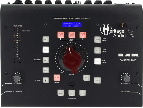 To communicate with artists, there's a built-in Talkback with console-style management. Finally, Heritage Audio has equipped the RAM System 2000 with an independent subwoofer output, enabling you to share your subwoofer effortlessly between different pairs of speakers.