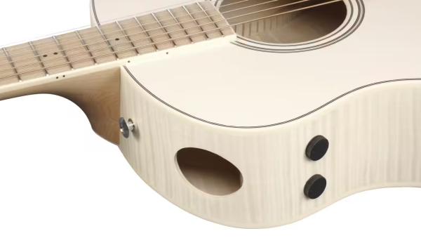 With the concept of Advanced Acoustics - ''Reimagining Acoustic Experience'' in mind, Ibanez carefully designed the new body shape of the Advanced Auditorium, drawing on our research into the general Auditorium body shape. After many rounds of prototyping, the Advanced Auditorium body has a slightly wider waist, which has been moved slightly towards the neck. Thanks to these changes, this shape delivers a richer low mids and better body to weight balance, which conventional Auditorium bodies tend to lack.
