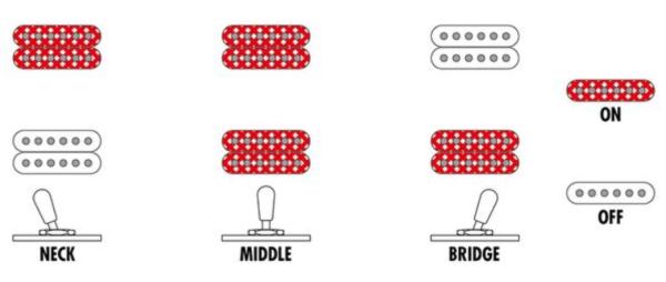 - Volume & tone for each pickup