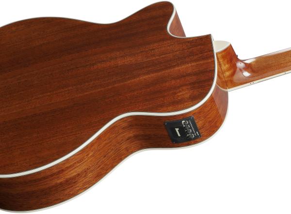 IBANEZ Artwood AC390CE NT acoustic/electric guitar is a Concert model with cutaway featuring solid Sitka Spruce top, layered african Mahogany back/sides, african Mahogany neck, Rosewood fretboard and Ibanez AEQ-TP2 preamp w/Onboard tuner.