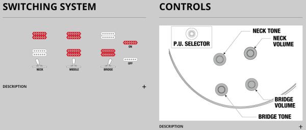 Okoume body, three pieces Ooume set-neck with 22 frets Jatoba fretboard (24.75" scale), Ibanez Super 80 humbucking pickups (passive, ceramic magnets) and Ibanez bridge.