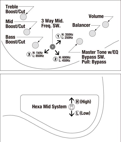 The Hexa Mid system offers players the flexibility to choose from two mid-range banks, each containing three distinct frequency points, for a total of six. Its exceptional versatility and user-friendly interface help players achieve their ideal bass sound.