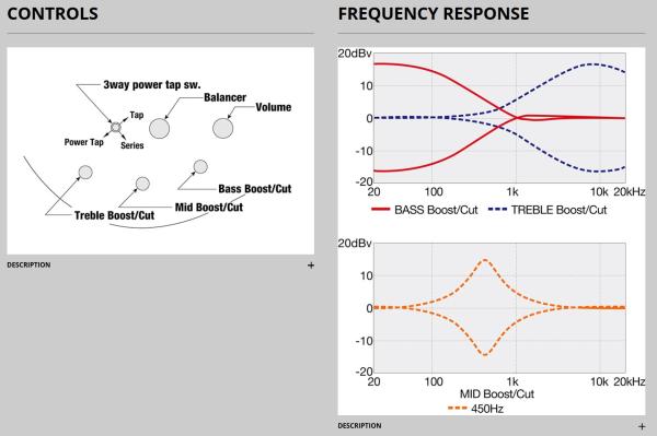 - 3-band EQ w/3 way Power Tap switch