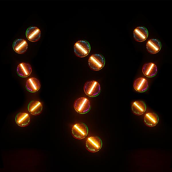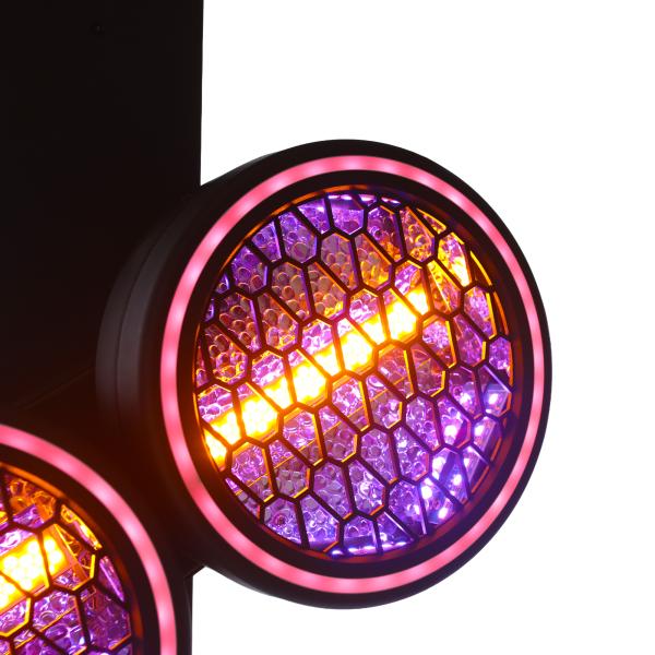 It combines a powerful COB main source with an RGB secondary lighting system, enabling intense lighting effects and dynamic color animations to be combined for both scenic and decorative effect.