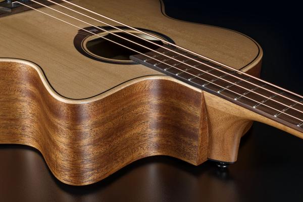 The very attractive and comfortable LAG Hyvibe HV10BCE is acompact steel string acoustic/electric bass with short scale featuring solid Cedar top, layered Khaya back/sides/neck and Brown Brankowood fingerboard/bridge. It benefits from excellent craftmanship, and provides warm, rich and dynamic sounds.