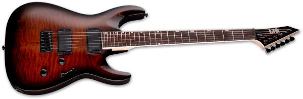 LTD BY ESP MH-200HT QM (Dark Brown Sunburst) solid body electric guitar takes design elements from acclaimed ESP Mirage Series (fast extra-thin neck, inline headstock) and Horizon Series (carved arch top body), adding up to a great all-around guitar that can handle nearly any musical genre or performance style.