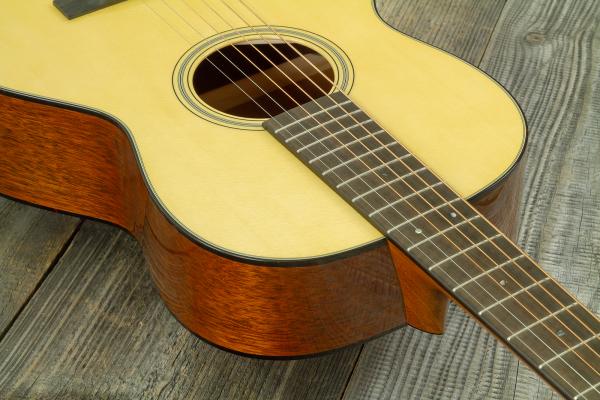 It features Solid Adirondack Spruce top and bracing, Mahogany back/sides, genuine solid Mahogany neck with Modified Low Oval and High Performance Taper profile, Ebony fretboard.