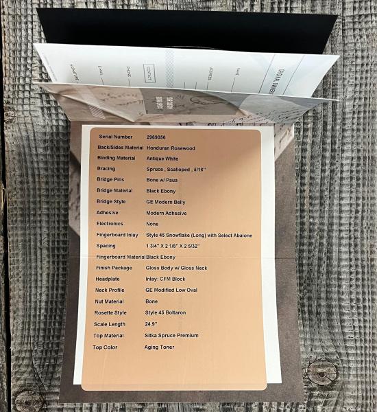 It features Solid premium Sitka Spruce top, solid Honduran Rosewood back/sides, genuine solid Mahogany neck with Modified Low Oval and High Performance Taper profile and Ebony fretboard.