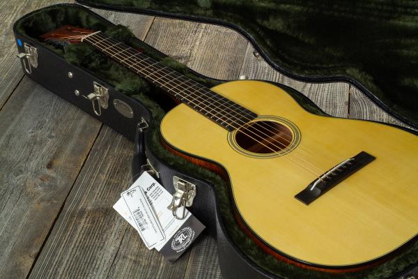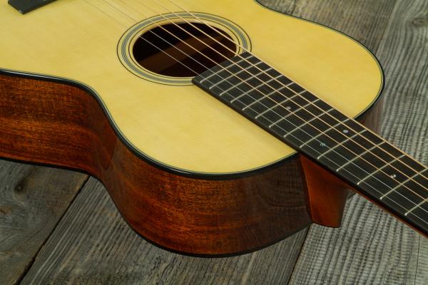 It features Solid Engelmann Spruce top, Sitka Spruce bracing, solid figured Maghogany back/sides, genuine solid Mahogany neck with Modified Low Oval and High Performance Taper profile, Ebony fretboard.
