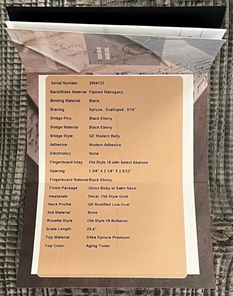It features Solid premium Sitka Spruce top, solid flamed Mahogany back/sides, genuine solid Mahogany neck with Modified Low Oval and High Performance Taper profile and Ebony fretboard.