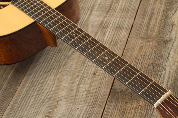 Sitka Spruce is the traditionnal choice for top wood on most acoustic guitars. Offering combination of strength and elasticity which translates into a broad dynamic range, Sitka Spruce has a punchy direct sound, yielding crisp articulation and allowing for versatile playing, from dynamic strumming, flatpicking or fingerpicking.