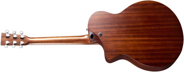The Low Profile Velocity neck feels fast and familiar, like your favorite electric, while the solid Spruce/Sapele construction delivers a rich midrange, airy trebles, and a high-end sparkle that suits a variety of styles.