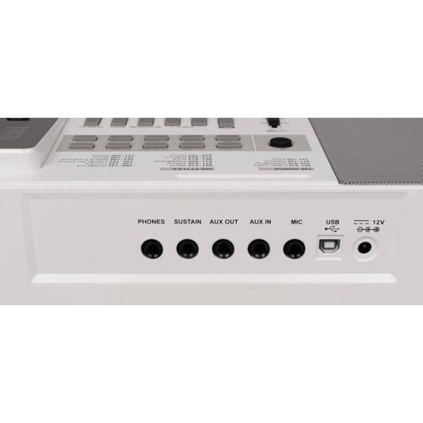 - Headphone jack, USB and auxiliary input, and standard MIDI file