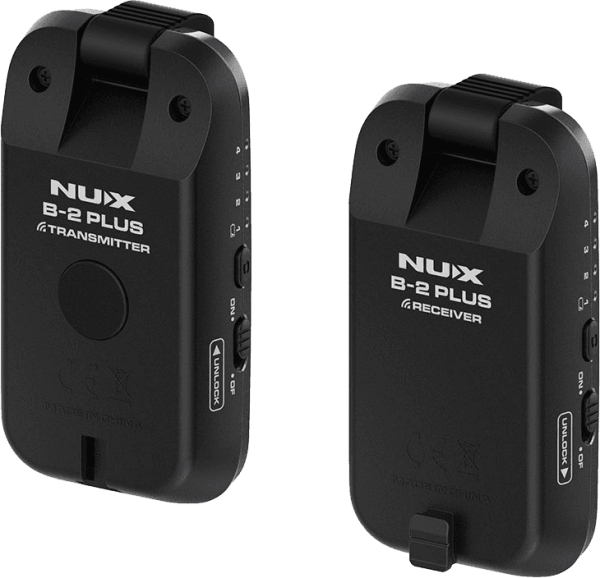 The Nux B2-Plus system operates on the 2.4 GHz frequency band for free, high-definition digital audio transmission (32-bit/41.4 kHz) with a very wide dynamic range of 110 dB. The B2-Plus offers several improvements over the B2, including a narrower bandwidth for better interference rejection. Its wide frequency response (20 Hz to 20 kHz) ensures reliable and clear transmission of your entire guitar and bass signal. Four different channels allow you to avoid interference and optimize your transmission depending on the environment, as well as transmit your signal to multiple receivers! This is very practical if you want to use multiple amplifiers!