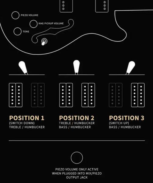- Blend magnetic pickups / piezo (or piezo volume if piezo through dedicated output)