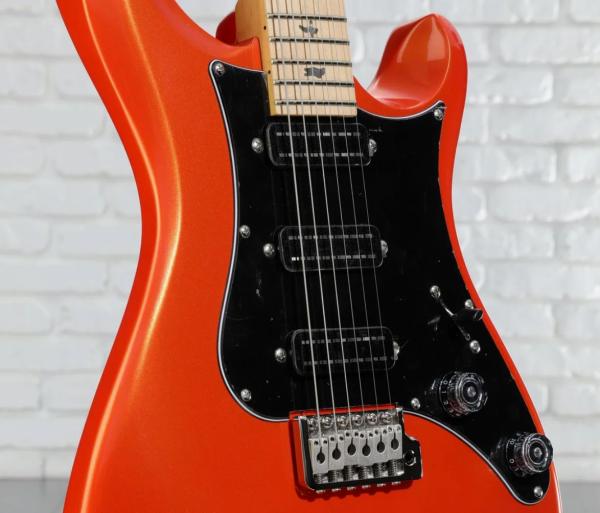 The PRS SE Bolt-On NF3 Maple (Metallic Orange) is a distinct guitar in the PRS lineup. The heart of this guitar is a trio of PRS Narrowfield pickups, a first for the SE Series. The Narrowfield DD (Deep Dish) “S” pickups are made with taller bobbins to fit more winds and extra metal pieces in between the magnets for a more focused, powerful tone. Anchored with PRS’s patented tremolo, this guitar can bend and flutter with ease.